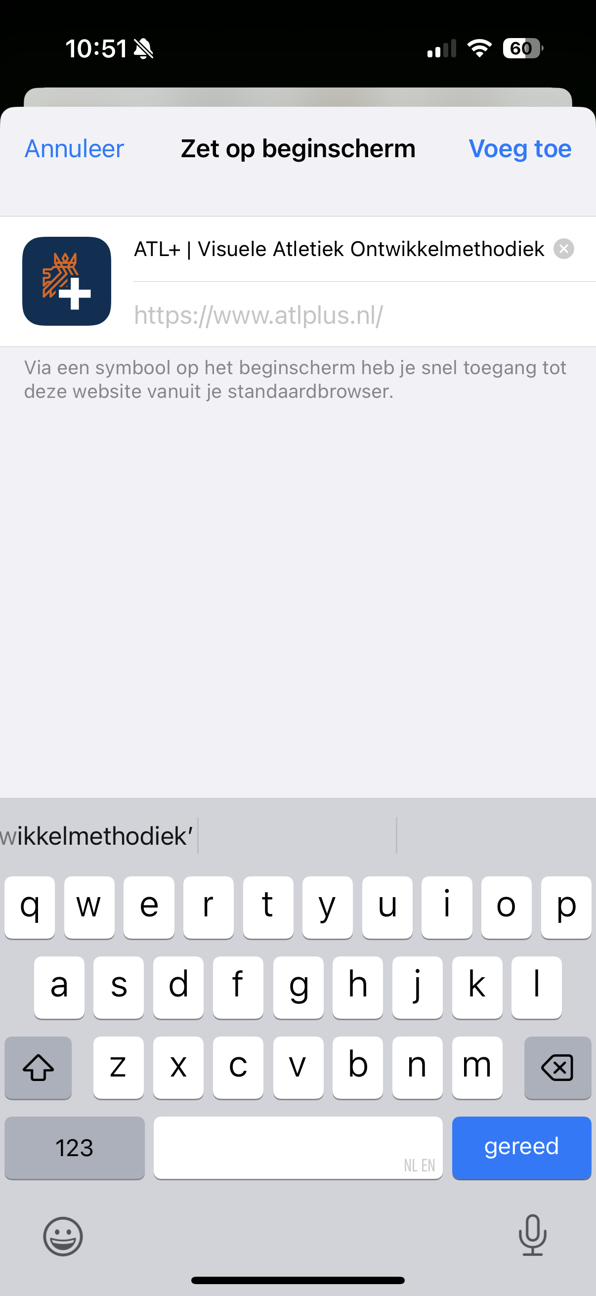 De ATL+ web-app staat nu op je beginscherm en opent voortaan in een app-achtige weergave, zonder adresbalk.